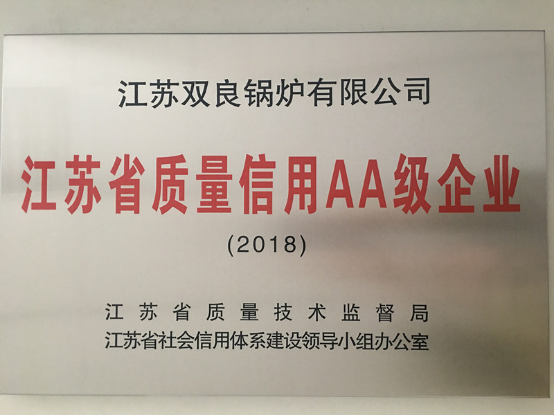 2019年3月18日,江蘇雙良鍋爐有限公司榮獲江蘇省質(zhì)量技術(shù)監(jiān)督局頒發(fā)的“江蘇省質(zhì)量信用AA級(jí)企業(yè)”稱號(hào)。