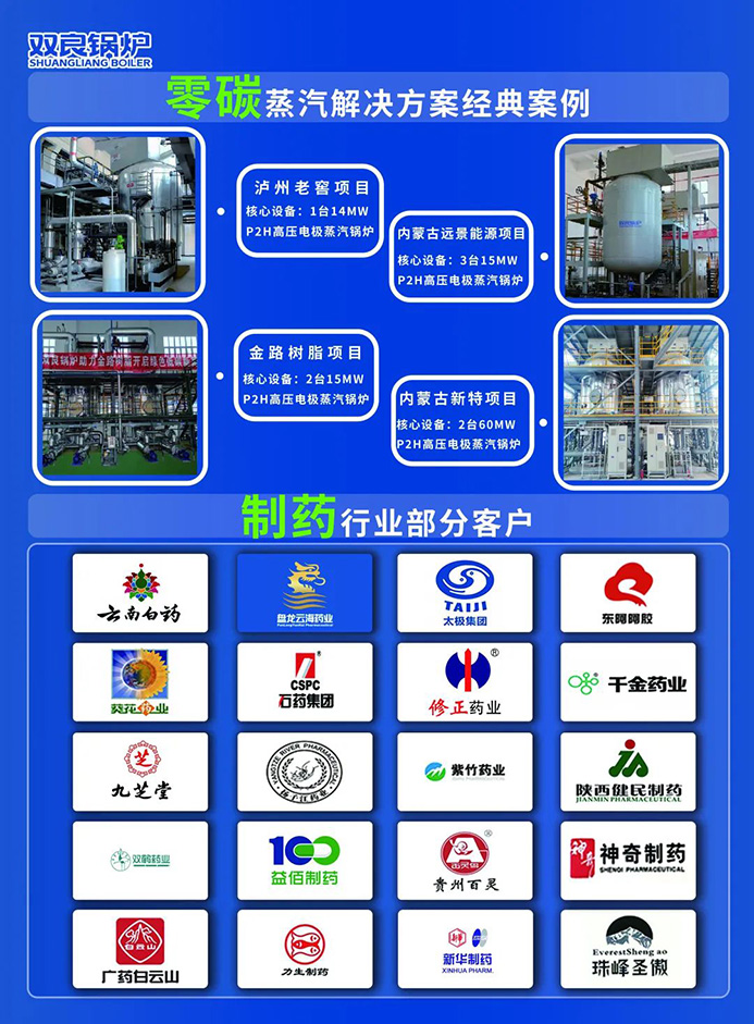 雙良鍋爐針對醫(yī)藥行業(yè)的用能特點(diǎn)和需求,開發(fā)了多種應(yīng)用場景下的蒸汽系統(tǒng)解決方案,得到了諸多知名醫(yī)藥企業(yè)的認(rèn)可,先后與云南白藥、盤龍?jiān)坪K帢I(yè)、太極集團(tuán)、東阿阿膠、葵花藥業(yè)、修正藥業(yè)、千金藥業(yè)、九芝堂等多家知名醫(yī)藥企業(yè)合作。